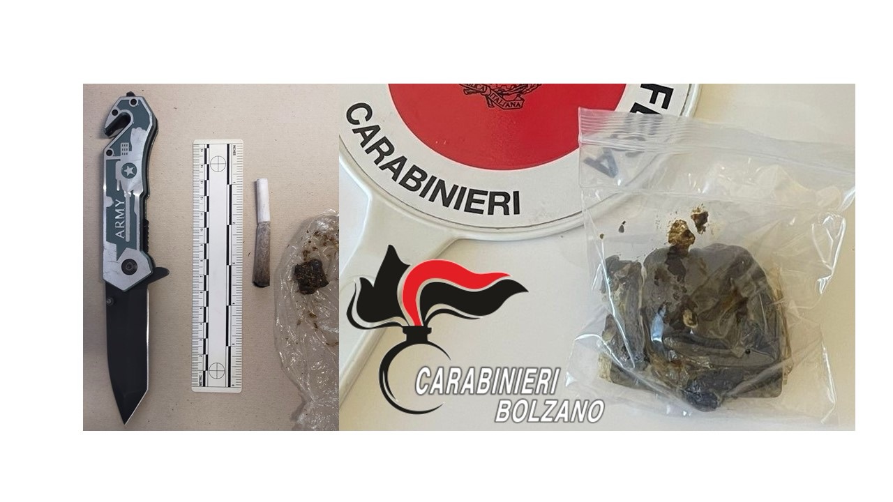 SALORNO. Controlli a tappeto nella notte a Salorno da parte dei Carabinieri della locale Stazione, in collaborazione con la pattuglia dell’Aliquota Radiomobile della Compagnia di Egna. L’operazione, condotta in via Aldo Moro, ha portato al sequestro di sostanze stupefacenti e di un’arma bianca.