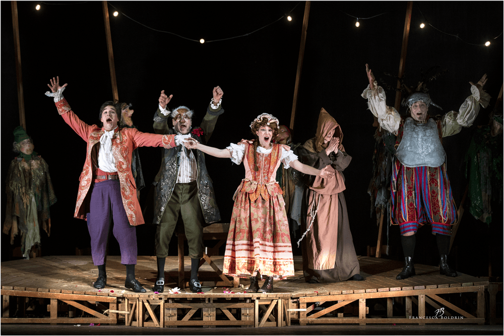 Sotto la regia di Matteo Destro, lo spettacolo intreccia commedia dell’arte, pantomima e musica dal vivo, mantenendo la leggerezza e il ritmo che da sempre contraddistinguono l’opera shakespeariana.